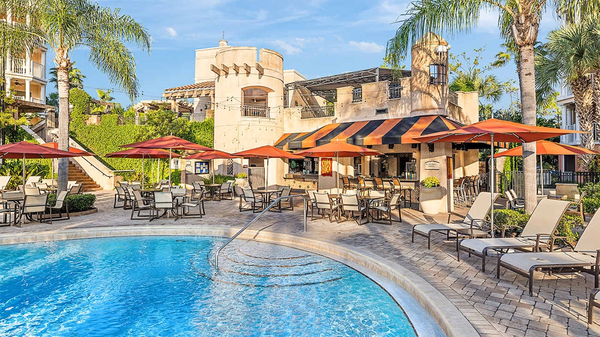 Bạn sẽ thích căn hộ 1 phòng ngủ, 2 phòng tắm, căn hộ rộng 798 m2 của chúng tôi rất gần Disney tại Blue Heron Beach Resort ở Lake Buena Vista tuyệt vời, nơi có nhiều nhà hàng và khu mua sắm! Tận hưởng khung cảnh bình minh ngoạn mục từ ban công riêng nhìn ra hồ. Tiện nghi khu nghỉ dưỡng bao gồm hồ bơi lớn, hồ bơi trẻ em, bồn tắm nước nóng, quầy bar tiki, phòng tập thể dục và phòng trò chơi. Nằm trên Hồ Bryan yên bình, bạn có quyền sử dụng các môn thể thao dưới nước như chèo thuyền kayak, chèo thuyền, ván trượt phản lực và câu cá trên hồ.