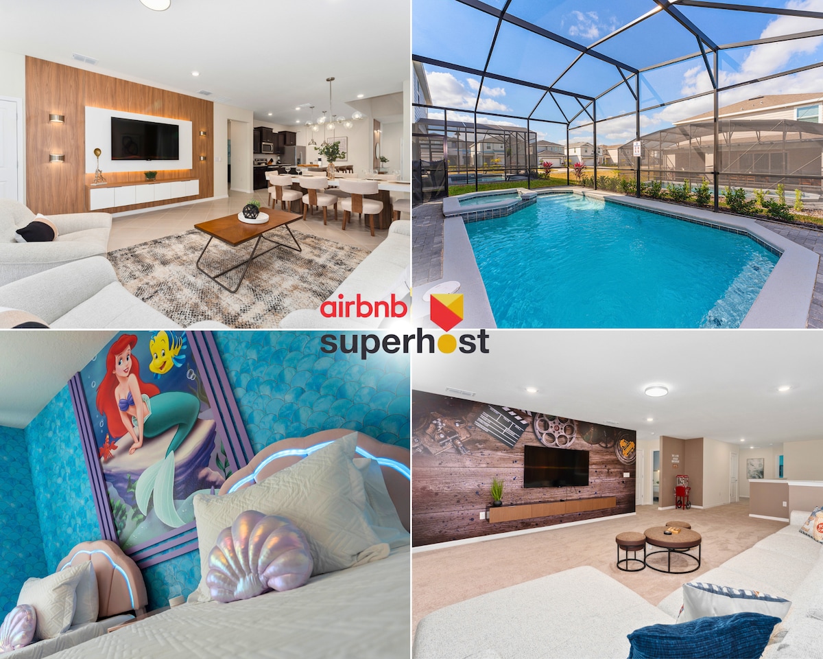 Được thiết kế chuyên nghiệp cho một kỳ nghỉ VUI VẺ khó quên và KHÔNG RẮC RỐI! CÔNG VIÊN NƯỚC TRONG ☆ KHUÔN VIÊN PHÒNG TRÒ CHƠI ☆ theo chủ đề với KHU TRÒ CHƠI ĐIỆN TỬ và phòng chơi game cao cấp Giường ☆ cực kỳ thoải mái. Chứa tối đa 11 khách Phòng ngủ ☆ Moana theo chủ đề tùy chỉnh ☆ 2 Luxury King Suites + 1 Queen Suite Chăn ga ☆ sang trọng HỒ BƠI nước nóng ☆ riêng ☆ Quầy CÀ PHÊ đầy đủ đồ Nhà bếp ☆ đầy đủ dụng cụ nấu ăn, bộ đồ ăn với các tiện nghi bổ sung ☆ Máy làm bỏng ngô ☆ Cách Disney World và Universal Studios vài phút. ☆ Phù hợp với gia đình