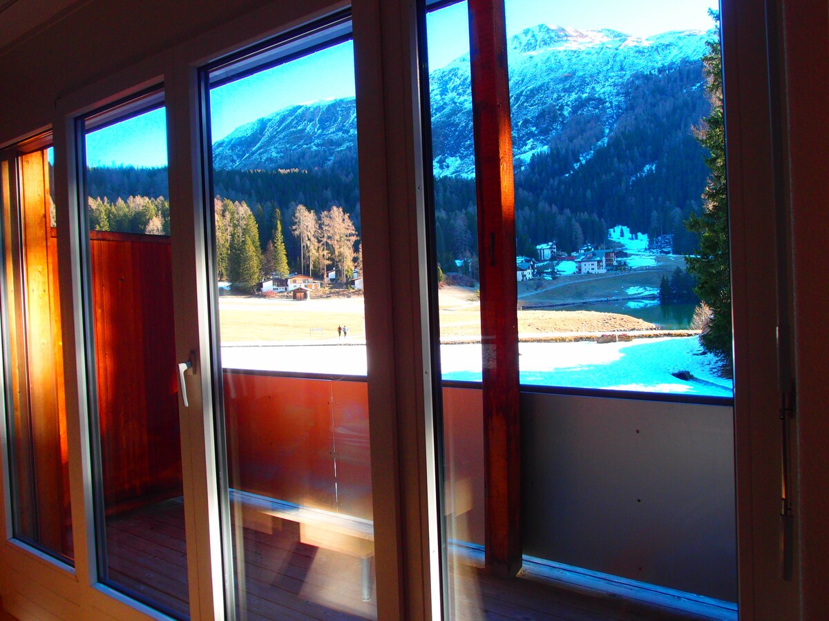Thư giãn trong chỗ ở yên bình này ở Davos Laret yên tĩnh. Bạn có thể đi bộ đến xe buýt làng Davos chỉ trong 2 phút và nó sẽ đưa bạn trực tiếp đến các khu trượt tuyết và đến đô thị Davos (cứ sau 30 phút). Ngoài ra, Davos Laret với Schwarzsee bình dị (cách đó chưa đầy 500 m) mang đến cơ hội bơi lội tuyệt vời hoặc bạn có thể đi bộ trực tiếp từ căn hộ vào một cảnh quan núi non tuyệt đẹp.