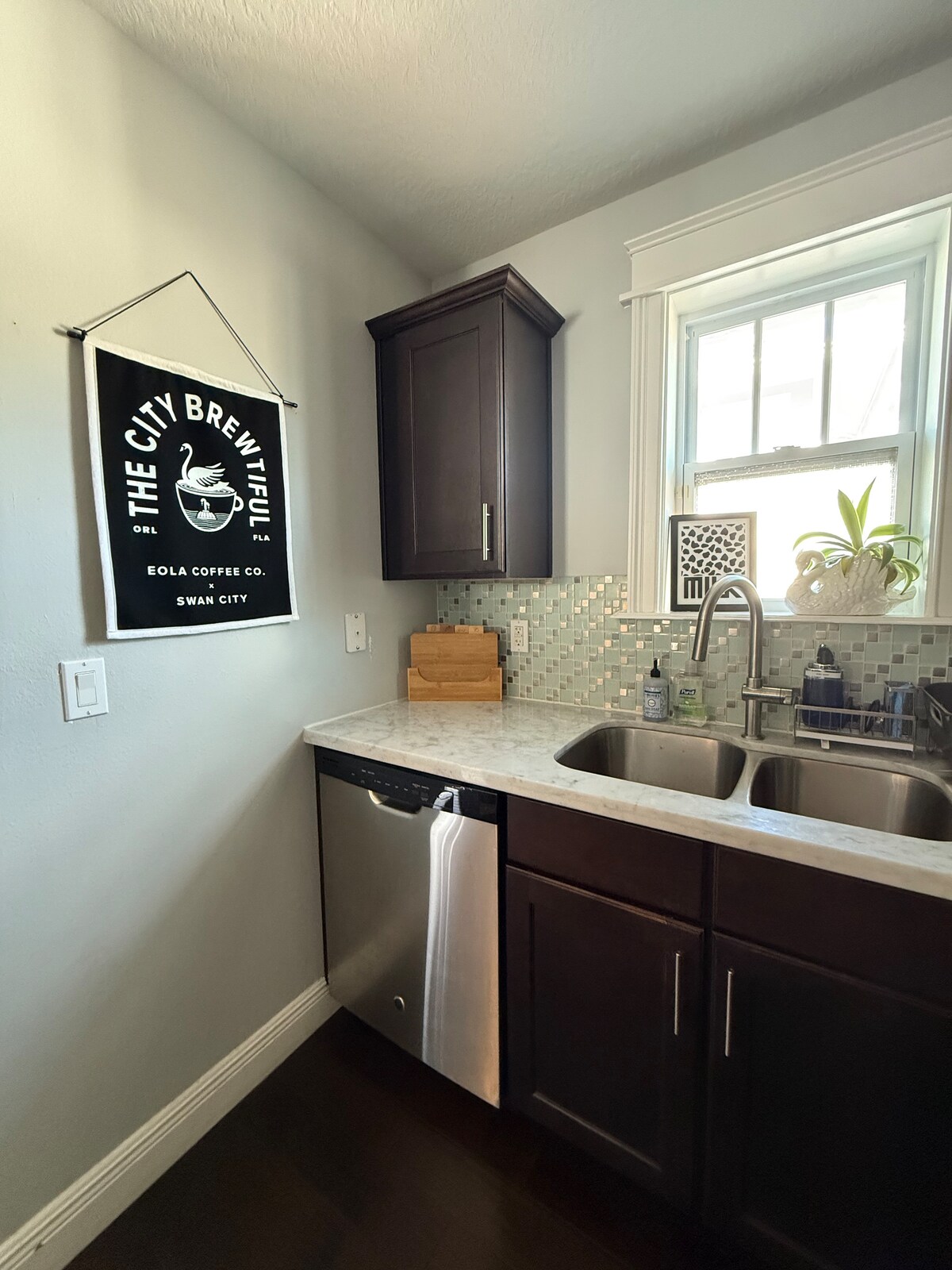 Design forward apartment in downtown, off brick-lined streets with private entrance and easy/free parking. Fully refreshed in 2026 with new bathroom, murals, and more. Full kitchen, living, separate bedroom & bathroom plus space for working. Pullout ottoman in living room. Large outdoor living space. Amenities: fridge, microwave, stove/oven, dishwasher, washer/dryer, smart TV, WiFi & more. Featured in Orlando Date Night's Guide for locals and a top Airbnb stay / guest favorite