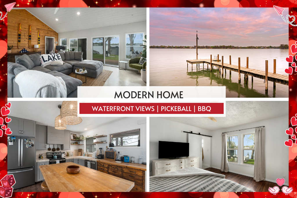 Welcome to Sunset Lookout- an exquisite modern cabin boasting 4 bedrooms, scenic water views, and direct water access, via staircase! The spacious yard is ideal for hosting get-togethers, playing a game of pickleball, and grilling. Inside, indulge in the luxury of a gourmet kitchen equipped with stainless steel appliances, and relish the panoramic water views through the floor-to-ceiling windows. You can create unforgettable memories with your loved ones by gathering around the fire pit!