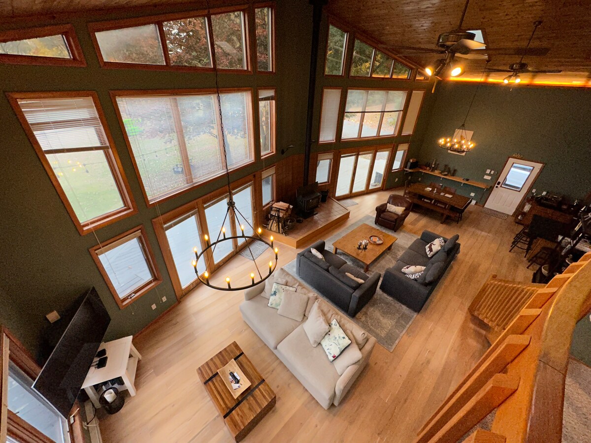 Cherry Ridge Cabin là một cabin rất đặc biệt trên 36 mẫu rừng và đường mòn riêng của bạn trong khu vực NEPA của dãy núi Poconos. Bơi lội, chèo thuyền kayak và thư giãn bên hồ riêng rộng 5 mẫu Anh của chúng tôi có tên là Big Bird Pond như được giới thiệu trong Philly Mag. Cái ao không dùng chung với bất kỳ ai khác! Theo dõi chúng tôi trên IG (cherryridgecabin). Cabin rất rộng rãi và tràn ngập ánh sáng này cung cấp 4 phòng ngủ và 4 phòng tắm, nhà bếp được trang bị đầy đủ tiện nghi, lò sưởi đốt củi, lò sưởi, v.v. Cabin này lý tưởng cho tối đa 9 người.