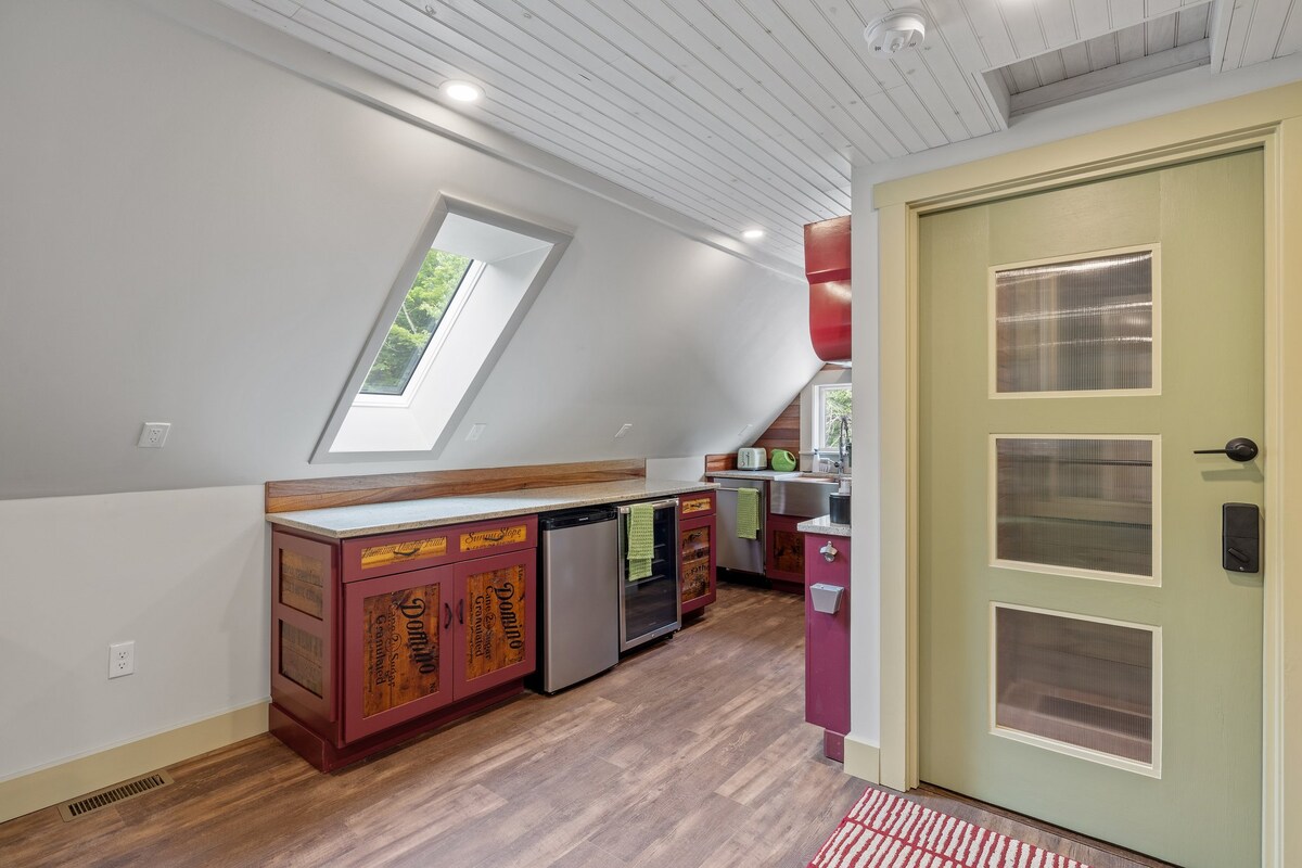 Đây không phải là căn hộ gác xép của mẹ bạn! Chúng tôi đã dành nhiều năm để xây dựng một trong những nơi ở tốt nhất tại Weirs. Chúng tôi không ở trên hồ nhưng chúng tôi ở gần mọi thứ bạn muốn làm. Khoảng cách đi bộ đến quán bar, nhà hàng và Funspot! Trải nghiệm đánh bạn ngay khi bạn mở cửa riêng của mình. Giường cỡ King trong chuồng nổi, Giường tầng dành cho người lớn, Giường Murphy đầy đủ tùy chỉnh, một phòng tắm nhìn ra khỏi HGTV, TV 81", Bếp mini tùy chỉnh, Phòng giặt ủi, Ăn trong khu vực Cà phê/Trà Bar quá nhiều để liệt kê