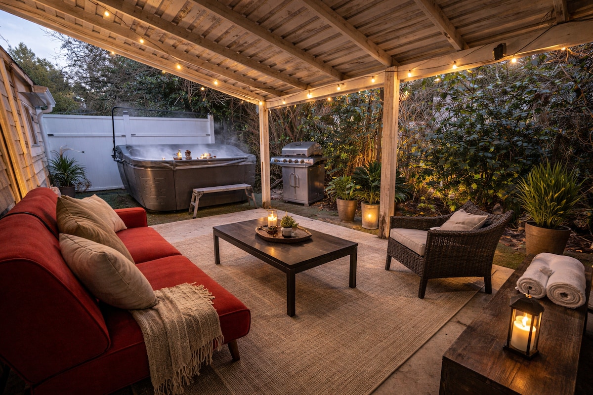 Căn hộ có bồn tắm nước nóng, hố lửa và BBQ