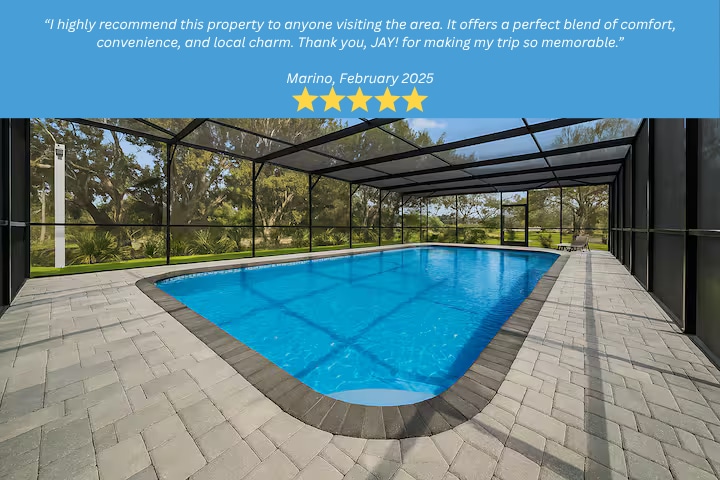 Experience the essence of Florida in style — endless sunshine, warm breezes, and total relaxation. Indulge in our brand-new six-person spa, featuring the only custom hot tub, bar, and pergola in the area. Surrounded by lush tropical landscaping and enclosed by an eight-foot privacy fence, this private oasis offers the perfect escape. When you’re ready to explore, enjoy world-class golf courses, crystal-clear springs, and charming beach communities just a short drive away.