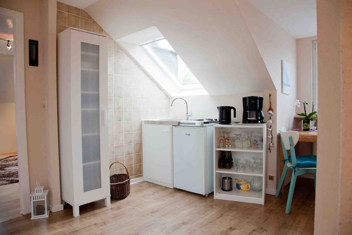 Bãi biển gần!!! Trong 5 phút đi bộ! Căn hộ trên gác mái,tầng trên, vị trí yên tĩnh, được cải tạo, ấm cúng, có lối vào riêng biệt. Dốc và cầu thang dốc. Bếp phòng đựng thức ăn, phòng khách với ghế sofa kéo ra và khu vực ăn uống, phòng ngủ có giường đôi 140x200, phòng tắm có bồn tắm. Căn hộ cho 2 người lớn được trang bị lý tưởng. Những người bạn bốn chân cỡ trung bình được chào đón với một khoản phí nhỏ!