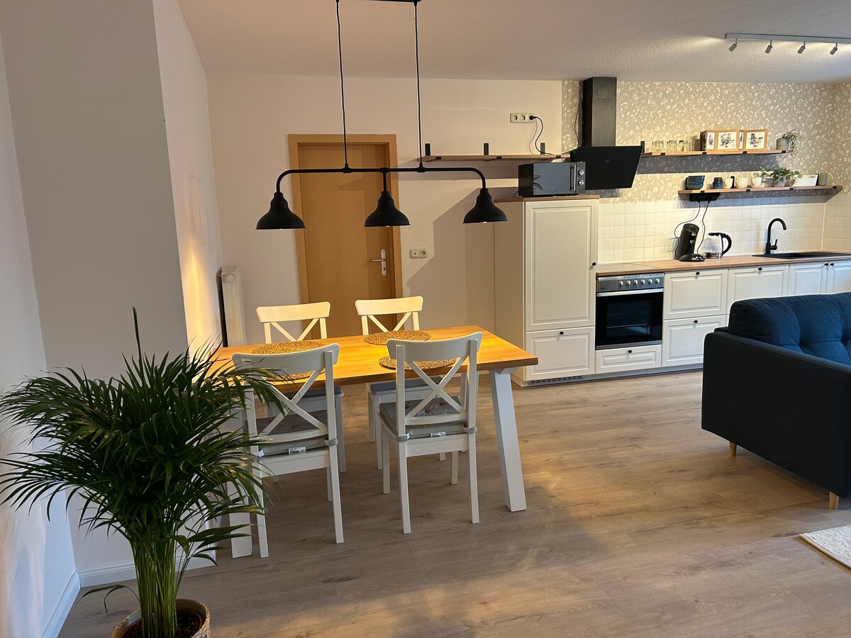Großzügige und moderne Airbnb-Oase mit 2 Schlafzimmern im Obergeschoss eines Zweifamilienhauses. Wohnraum mit 90m² und direkten Parkmöglichkeiten. Das moderne Wohn- und Esszimmer ist durch die bodentiefen Fenster mit Blick in die Natur ein echtes Highlight. Genieße entspannte Fernsehabende vor unserem 55-Zoll-TV und angenehme Mahlzeiten im geräumigen Essbereich. Für Arbeit während des Aufenthalts steht ein Schreibtisch bereit. Die großzügige Küche lädt zum gemeinsamen Kochen ein.