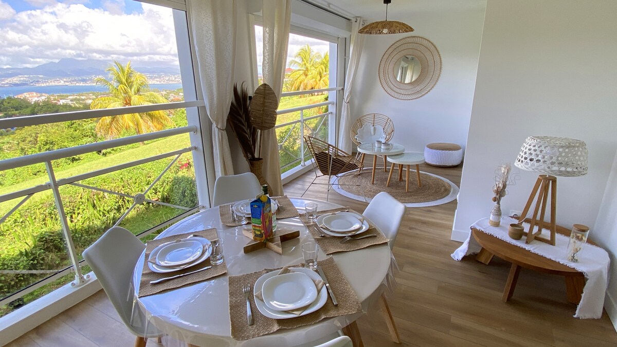 Chào mừng bạn đến với căn hộ ấm cúng và thoải mái của chúng tôi trên đỉnh L'Anse à l 'âne. Căn T2 rộng 50 m2 quyến rũ này với tầm nhìn 180 độ ra Vịnh Fort-de-France và Carbet pitons từ sân thượng được trang bị đồ nội thất sân vườn. Căn hộ Ti-Kaz của Alex nằm ở vị trí thuận tiện chỉ cách tiệm bánh, hiệu sách/cửa hàng thuốc lá gần đó 500 m đi bộ Ngoài ra, bạn có thể thưởng thức các nhà hàng nằm trên bãi biển và đi tàu con thoi biển đến FDF
