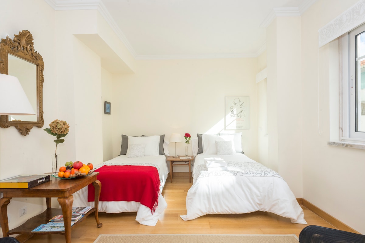 - Apart with unique personality, designed for QUIET PEOPLE, who want to enjoy Lisbon's light, in a Good Energy, cozy setting 💛 - Located in a top district (home to most embassies) - Special Nature spot in the backyard, with open view 💚 - Two fully equiped workstations + Fast internet speed (<500Mbps) + USB ports in all rooms + USB/Energy cable for the balcony - Powerful AC / Modern heating systems / Exterior heater&blankets - If tired, recover&relax in a professional massage chair 💖