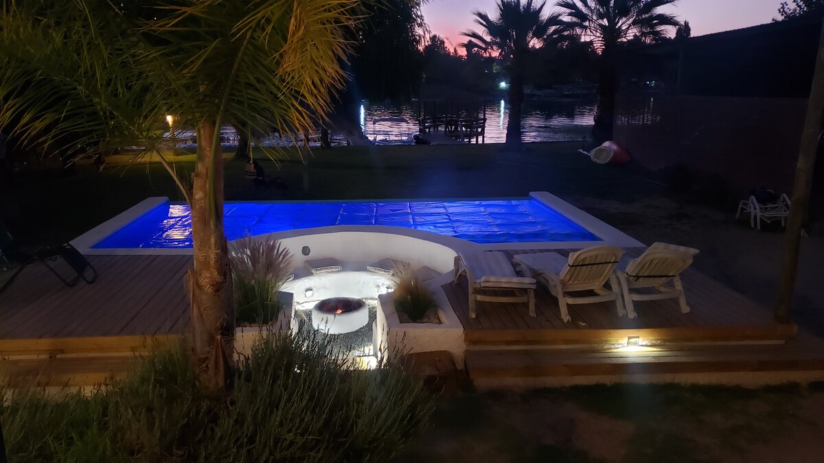 Nhà hiện đại được trang bị đầy đủ tiện nghi, trong khu chung cư, có người chăm sóc thường xuyên, ở tuyến đầu bên hồ, hồ bơi, bồn tắm nước nóng, quincho, Starlink và thuyền kayak. Có thể thuê ván trượt nước và thuyền. Hai phòng ngủ đôi với phòng tắm khép kín. Hai phòng đôi, với hai giường 1,5 vuông. (có tầm nhìn) Nệm futon 1,5 mét vuông. 5 phòng tắm đầy đủ. 3 phút đến: Siêu thị, nhà thuốc, cửa hàng rau củ, cửa hàng cá và nhà hàng. Bến tàu có bãi đậu thuyền và xe máy riêng.