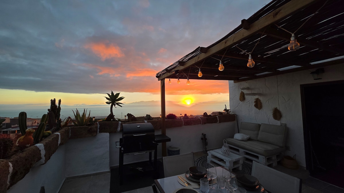 Ngôi nhà kiểu Canaria xinh đẹp với hai phòng được cải tạo gần đây với sân thượng lớn và hồ bơi với phòng tắm nắng và khu vực thư giãn. Ngôi nhà nằm trong khu vực yên tĩnh với bầu không khí nông thôn nhưng với lợi thế là chỉ cách bãi biển 15 phút. Ngôi nhà nằm trên đỉnh đồi và có tầm nhìn toàn cảnh tuyệt vời và sạch sẽ ra biển. Hoàng hôn tuyệt đẹp với đảo La Gomera ở hậu cảnh. Sleep house tenerife trong các kênh truyền thông I-G