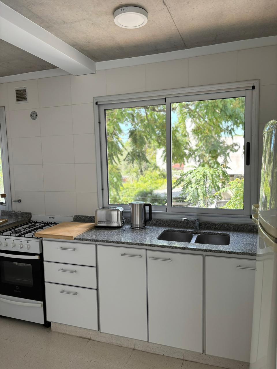 Departamento de 3 ambientes, moderno y luminoso a pasos del centro de Las Flores. Capacidad máxima para 4 personas. Techos de hormigón, y totalmente equipado: cocina completa (microondas, heladera, tostadora, pava eléctrica, etc.), lavarropas, calefacción por radiadores, aire acondicionado, televisión y wifi. Dos dormitorios (uno con escritorio) con luz natural gracias a los grandes ventanales. Espacio funcional y cálido, pensado para que te sientas como en casa.