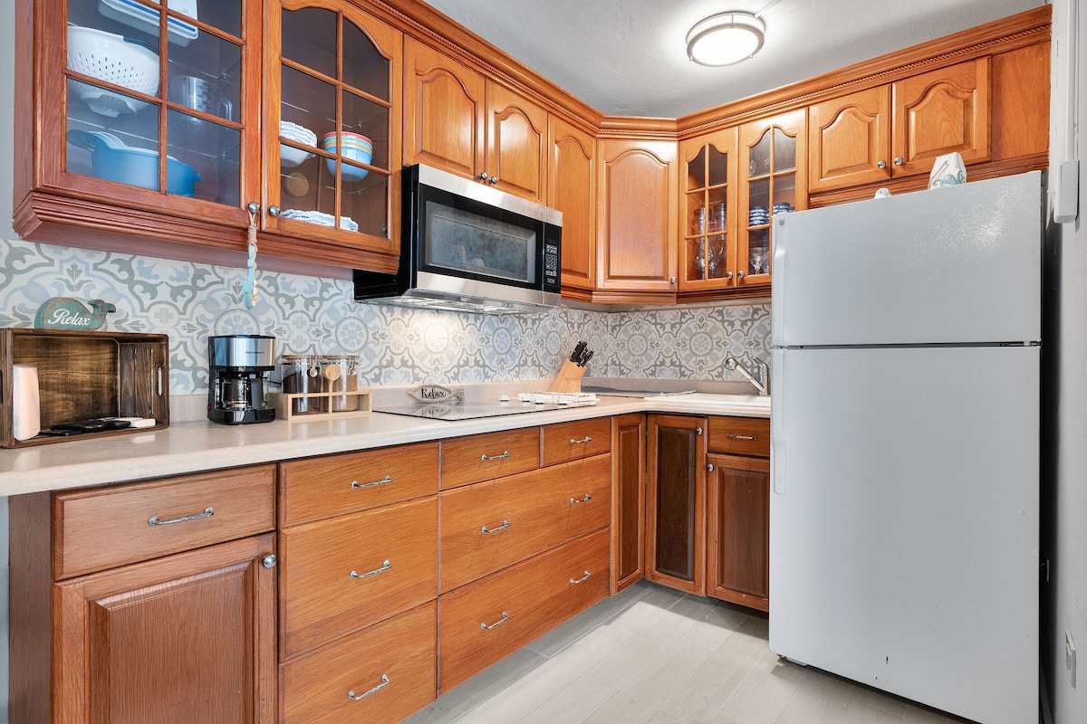 Trải nghiệm cảm giác bãi biển nhiệt đới trong căn hộ 2 phòng ngủ boho sạch sẽ và ấm cúng của chúng tôi ở Ocean Park. Chỉ cách bãi biển một dãy nhà, bạn có thể bắt đầu một ngày của mình với một buổi sáng chạy bộ và tầm nhìn tuyệt đẹp ra biển Caribe. Thư giãn trên sân thượng rộng lớn đầy lá của chúng tôi, nơi gió biển sẽ làm bạn sảng khoái khi bạn thưởng thức cà phê buổi sáng và lên kế hoạch cho cuộc phiêu lưu của mình. Căn hộ bao gồm một nhà bếp đầy đủ với máy pha cà phê espresso, hai phòng ngủ với giường queen và một phòng tắm, cung cấp tất cả tiện nghi bạn cần cho một kỳ nghỉ hoàn hảo.