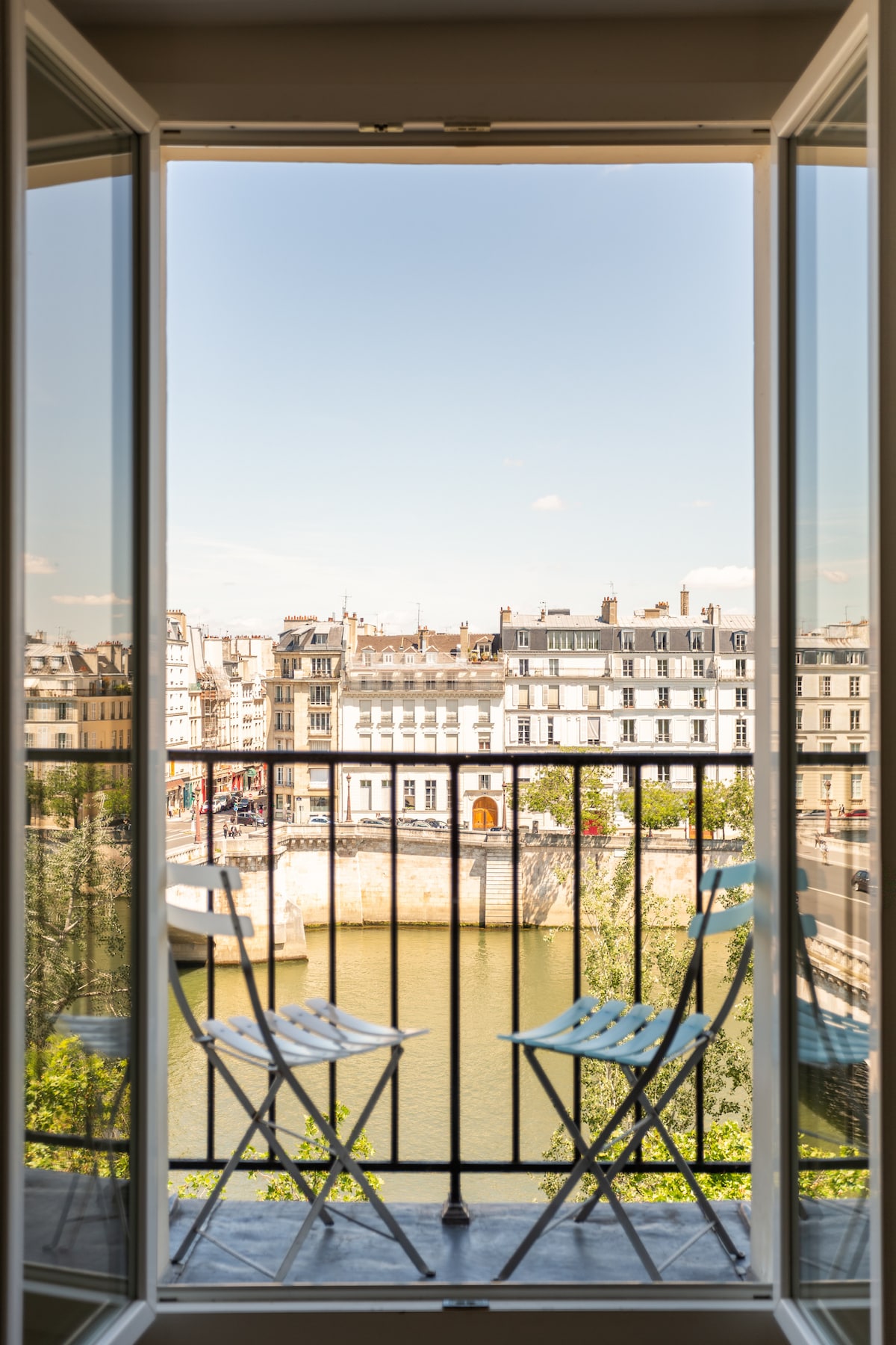 Yêu ngay từ cái nhìn đầu tiên ở trung tâm Paris cũ với căn hộ hai phòng tuyệt đẹp này và ba cửa sổ với ban công dọc theo sông Seine. Khung cảnh độc đáo của Paris đối diện với Ile Saint Louis, Ile de la Cité (Nhà thờ Đức Bà), Tour Saint Jacques và nhiều di tích biểu tượng khác. Ghé thăm thành phố tình yêu ngay tại nhà. Nhiều cửa hàng và phương tiện giao thông công cộng trong bán kính 500m