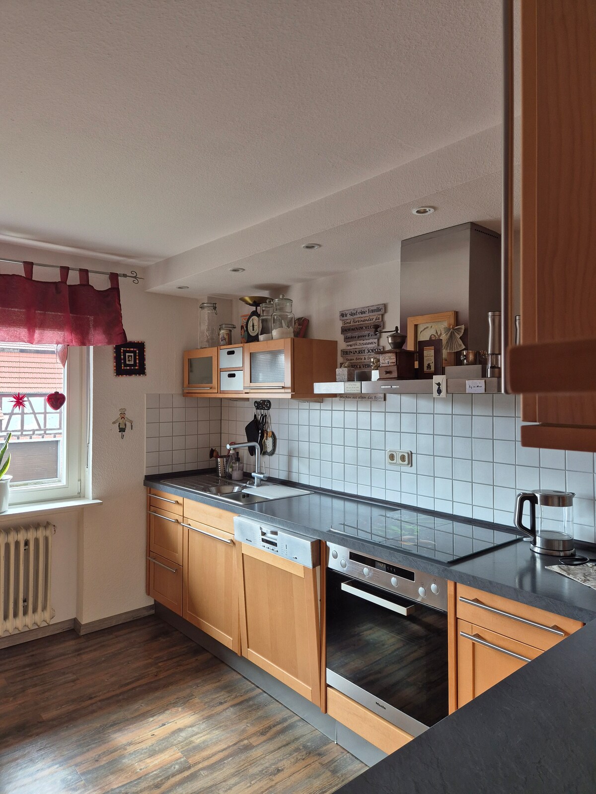 Ob mit dem Fahrrad den Vogelsberg erkunden, die schönsten Fachwerk Städte besuchen, die Natur im Vogelsberg genießen, oder nach einem Arbeitstag in der Gegend ausspannen-hier ist es möglich. Frisch renoviert und sehr hochwertig ausgestattet. Die Küchenschränke + Kühlschrank sind gefüllt, siehe Bilder. Sie müssen nicht unbedingt einkaufen gehen. Abrechnung des 'Verbrauchs' nach eigenem Ermessen, keine 'Minibar Konditionen'. Der Miele Waschtrockner erledigt kleine Wäsche (3kg) in einem Durchlauf