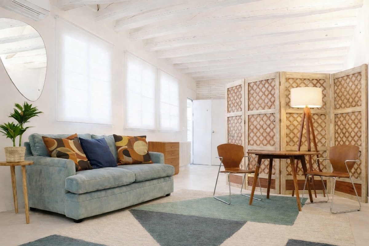 Beautiful and compact loft-style cozy space with double height, full of natural light and warmth, located in the center of Madrid. Recently renovated. Part of a 19th-century manor villa, bathed in natural light and featuring 4.5-meter-high ceilings. A haven of calm and elegance in the historic heart of Madrid. Located on the Museum Mile, next to El Retiro Park, the Reina Sofía and the Prado. Just steps from Atocha Station, surrounded by art, gardens, and monumental architecture.