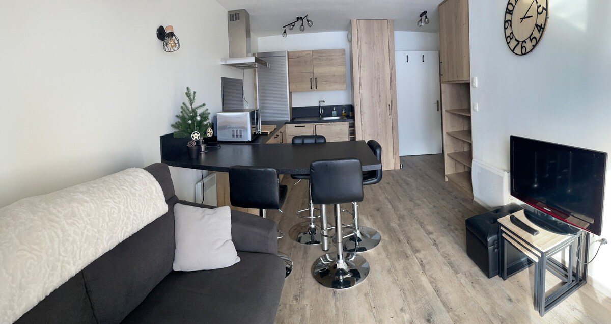 Hãy đến và ở tại căn hộ mới được cải tạo này. Với 4 giường bao gồm sofa giường (với nệm thật!) và một giường đôi trên gác lửng, không gian này hoàn hảo cho một kỳ nghỉ trên núi. Tận hưởng khung cảnh ngoạn mục của các đỉnh núi từ ban công. Chỗ ở có lối đi thẳng đến dốc có tủ khóa trượt tuyết. Căn hộ được trang bị đầy đủ tiện nghi để có thời gian lưu trú tốt: nhà bếp được trang bị, TV, máy rửa chén, máy sấy quần áo.