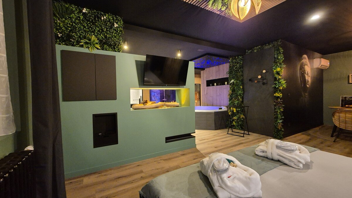 Toi et Moi gîte : Que ce soit pour une escapade romantique, un moment de bien-être ou une célébration spéciale, cette suite est un véritable sanctuaire où luxe, volupté et sérénité se rencontrent en parfaite harmonie. Ici, chaque instant devient un souvenir mémorable, une parenthèse enchantée hors du temps. Vous n’aurez qu’une envie : prolonger indéfiniment cette douce évasion, et vous laisser envelopper par un cocon de douceur et de calme.