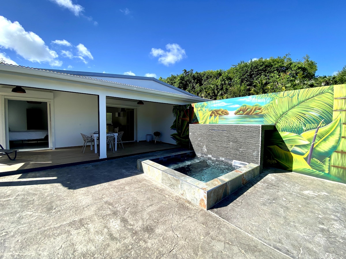 Không thể tiếp cận với PRM (Những người bị giảm khả năng di chuyển) Casa M là một ngôi nhà nghỉ thôn dã mới quyến rũ, hoàn thành vào tháng 12 năm 2024, được thiết kế để mang đến cho bạn một kỳ nghỉ khó quên. Tọa lạc tại Le Gosier, ngay trung tâm Guadeloupe, nơi đây có màu xanh lá cây và thanh bình, chỉ cách đó 5 phút lái xe: - Từ bãi biển Datcha - De l 'îlet du Gosier - Một siêu thị - Một tiệm bánh - An en primeur - Một hiệu thuốc - Một trạm xăng.