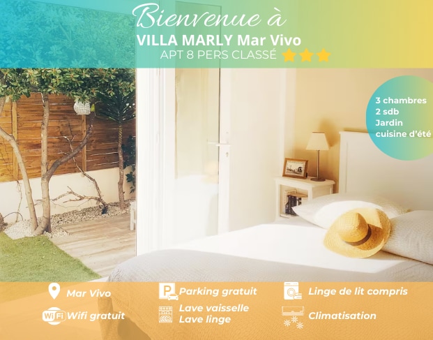 Căn hộ, được phân loại và đầy sao, hoàn toàn mới, ở tầng hai của biệt thự của chúng tôi, chỉ cách những con sóng đầu tiên 10 m, được hưởng lợi từ một sân thượng lớn nhìn ra biển. Nó có diện tích 35 m2 và sân thượng riêng 25 m2. Các nhà hàng và Công viên Braudel gần đó. Đây là một nơi hoàn hảo để thư giãn hoặc thể thao, với rất nhiều hoạt động dưới nước và cơ hội đi bộ hoặc đi xe đạp leo núi. Đây là nơi hoàn hảo cho một kỳ nghỉ như một cặp đôi hoặc với trẻ em.