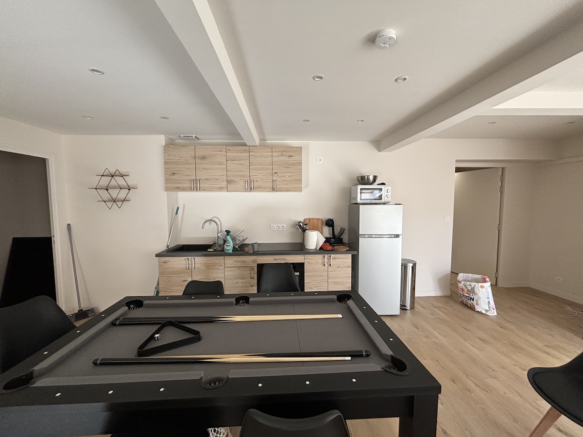 Khám phá sự quyến rũ đặc biệt của ngôi nhà của chúng tôi ở Saint-Étienne. Một tầng lửng dưới bầu trời chăn và một tấm lưới quyến rũ đang chờ đón bạn. Tận hưởng bồn tắm balneo đôi, lò sưởi và màn hình khổng lồ với máy chiếu video từ giường hoặc lưới. Nhà để xe riêng và lối vào tự động đảm bảo sự thoải mái và riêng tư. Cách Stade Geoffroy Guichard và Zénith vài bước chân, không gian độc đáo này hứa hẹn một kỳ nghỉ lãng mạn và kỳ diệu.
