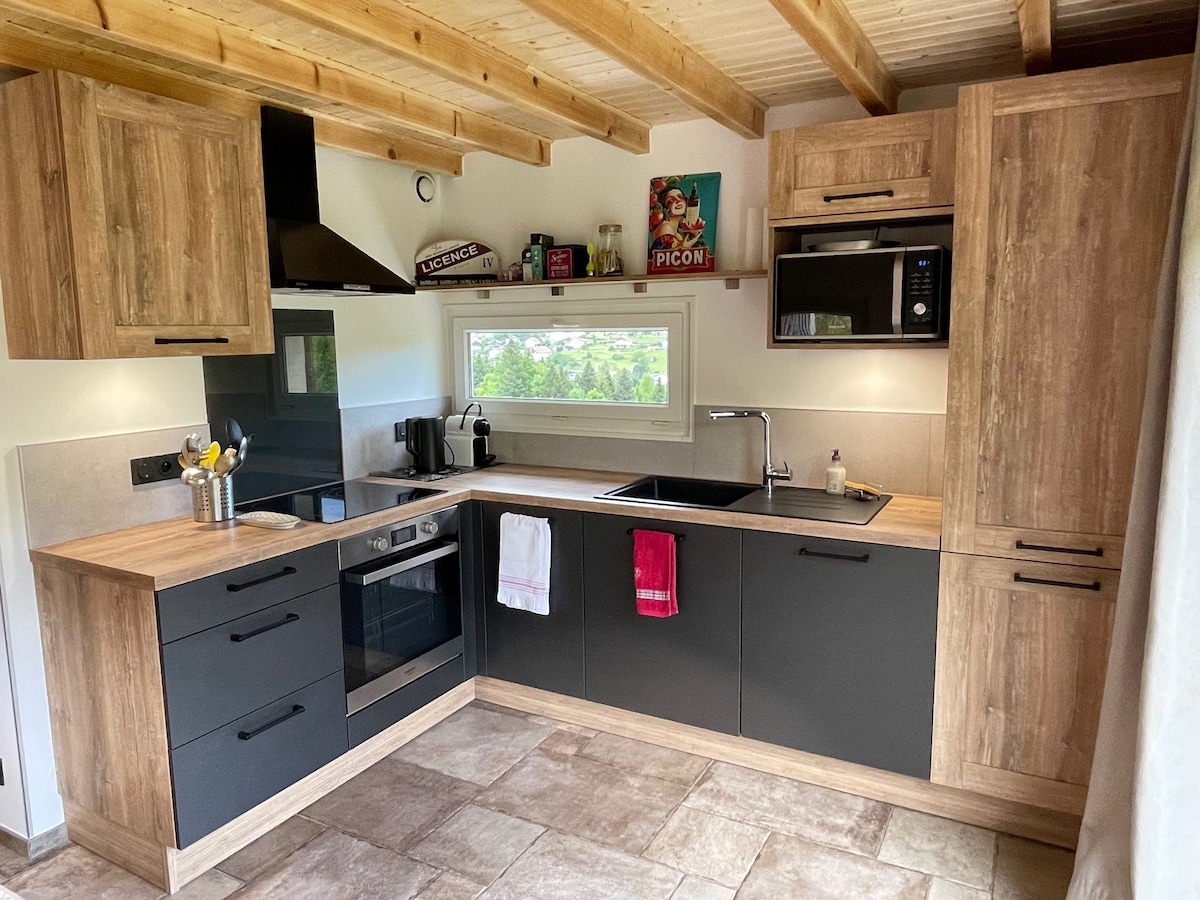 Đối với bạn, toàn bộ "nhà gỗ chalet" nằm hướng về phía nam và được bao quanh là thiên nhiên, với tầm nhìn toàn cảnh thung lũng. Được cải tạo hoàn toàn, bạn sẽ có một nhà bếp được trang bị trong phòng khách, một phòng khách với ghế sofa có thể chuyển đổi, phòng tắm có vòi sen, nhà vệ sinh riêng và phòng ngủ. Bạn sẽ được tận hưởng bên ngoài với ban công, pergolas và khu đất không có rào chắn, tránh xa giao thông. Có một gara. Chỗ ở hoàn hảo cho các gia đình có 2 trẻ em, một cặp đôi hoặc một mình.