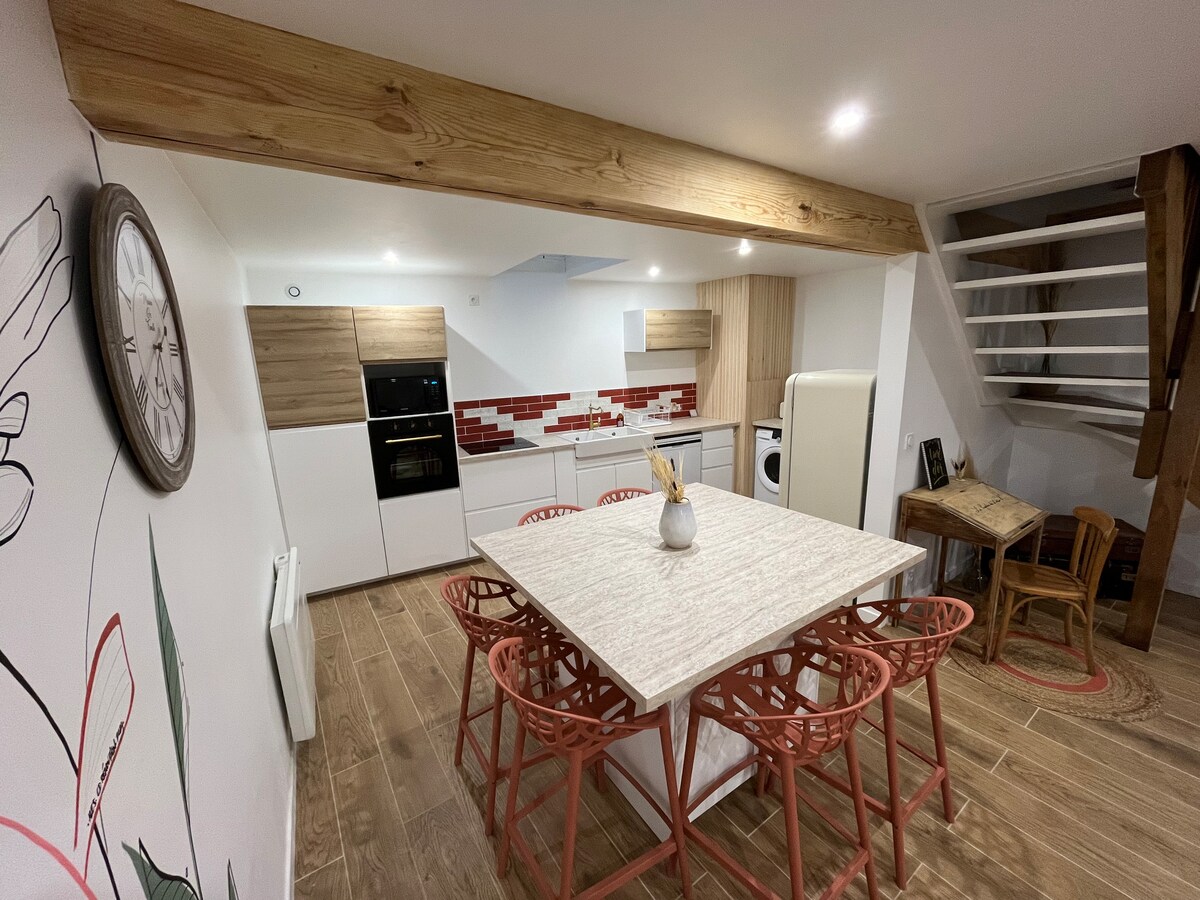 Ẩn mình giữa vùng nông thôn Gers, cách Landes và Atlantic Pyrenees vài bước chân, ngôi nhà rộng 90 m² này kết hợp tính xác thực và sự thoải mái hiện đại. Hãy đến và sạc pin và khám phá nét quyến rũ đích thực của nó đối diện với Pyrenees. Chỗ ở được thiết kế cho thuê theo mùa để đi du lịch, kinh doanh và du lịch gia đình.