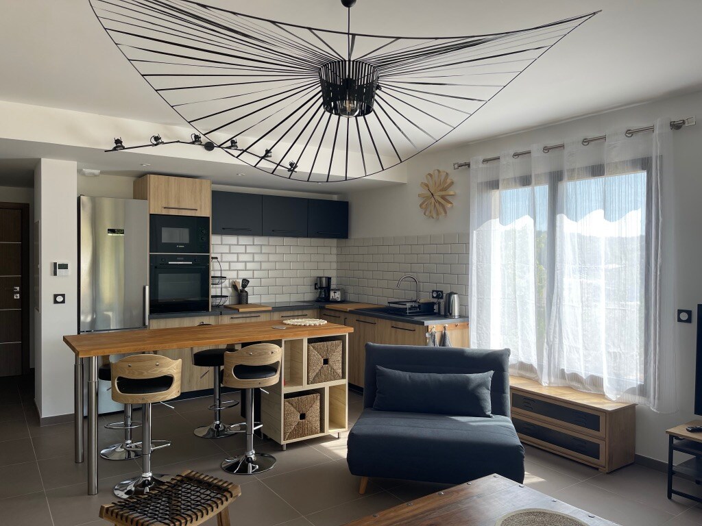 Căn hộ T2, gần đây, trong khu dân cư sang trọng, nằm ở tầng 2 có thang máy, - Tổng diện tích trong nhà 50 m2 - 13 m2 sân thượng hướng nam - Chỗ đỗ xe ngoài trời có cổng riêng. - Nơi cư trú 4,7 ha có hàng rào, với người chăm sóc và người làm vườn quanh năm, được trồng thảm thực vật Địa Trung Hải. - Hồ bơi vô cực - 2 sân quần vợt - 2 sân petanque - Pool House với quầy bar / giải trí có thể vào tháng 7/tháng 8.
