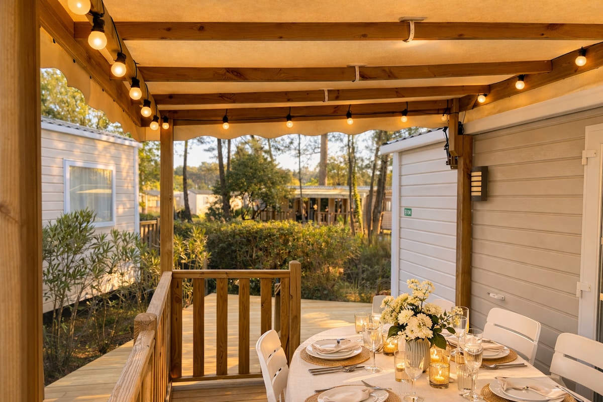 Cap Ferret Mobilhome vue canal • 2 terrasses • 6p