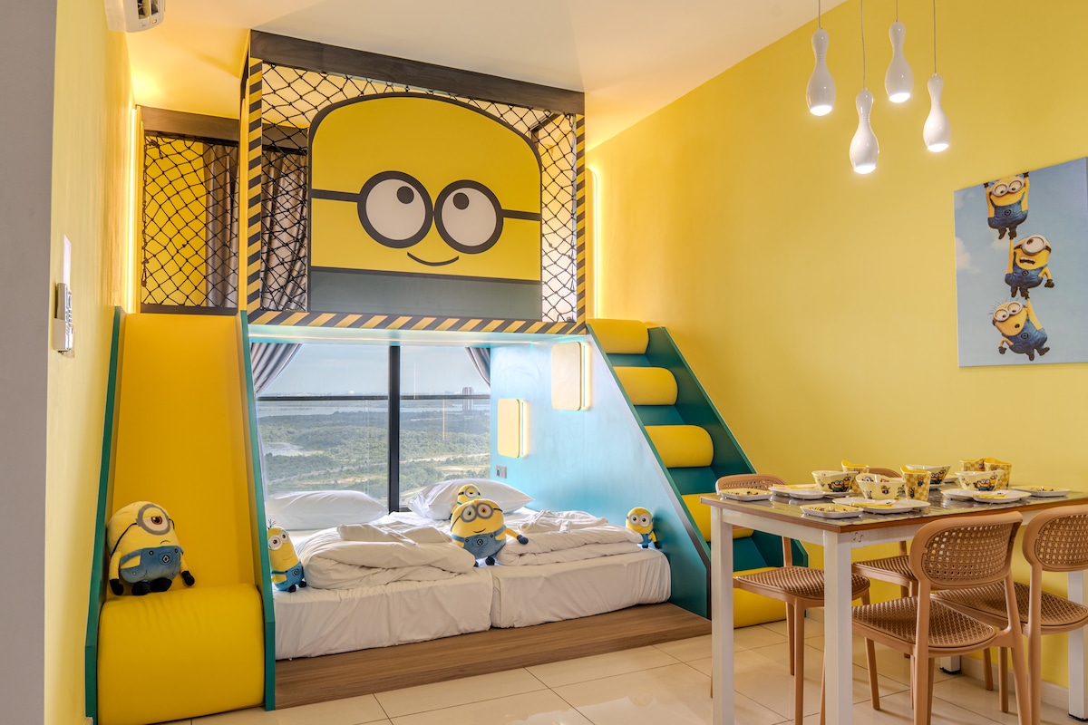 BEST. LEGOLAND. VIEW This is a High Floor room with the Best Legoland view that you will have from Living Hall --> Bedroom 2 --> Master Bedroom. You will have a cozy, comfort and nice sleep here in this house^^ WHAT'S SPECIAL ABOUT THIS HOUSE? It has an INDOOR PLAYGROUND for yourself! It's PLAYFUL ENOUGH and yet ALSO COSY ENOUGH for your kids. You can either climb and shake your energy off or snuggle yourself at the cosy corner inside the playground house.