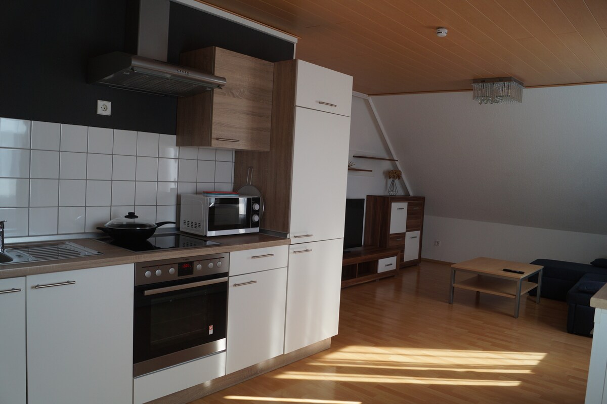 Căn hộ mới đa năng này trong một ngôi nhà 2 gia đình từ năm 2024 có thể được sử dụng làm căn hộ hội chợ thương mại cho các nhóm hoặc công ty. Tuy nhiên, đây cũng là nơi thư giãn cho một chuyến đi ngắn đến vùng nông thôn cho các cặp đôi hoặc một căn hộ nghỉ dưỡng cho cả gia đình. A7 ở gần (phía sau một khu rừng nhỏ và do đó không nghe được) và do đó vị trí này cũng hấp dẫn đối với khách quá cảnh.