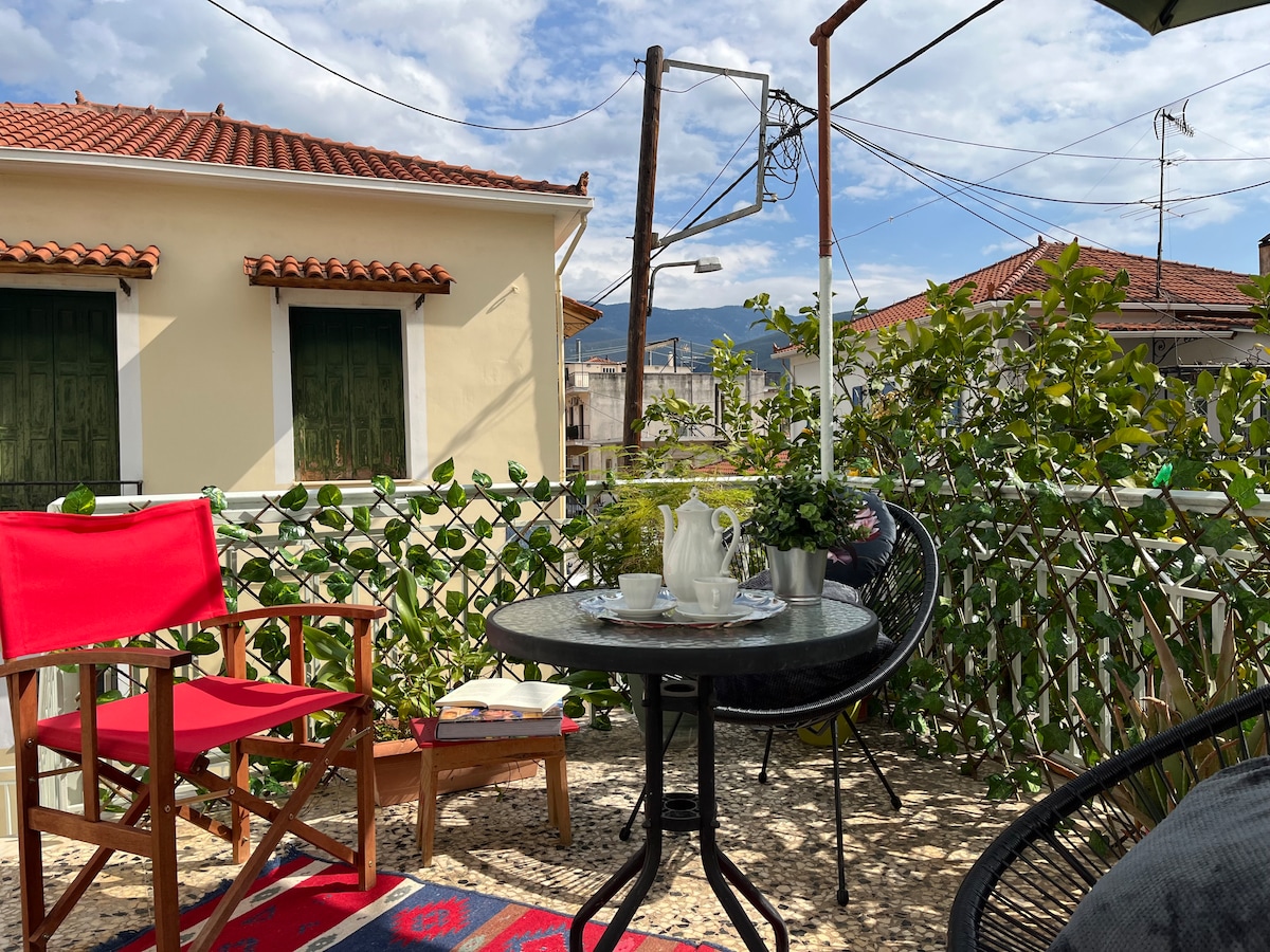 Ngôi nhà nằm ở trung tâm của ngôi làng nhỏ mới xinh đẹp, rất gần quảng trường làng và Câu lạc bộ đồng quê, trong một khung cảnh mơ mộng dưới chân Helidona với tầm nhìn ra Kaliakouda và Velouchi. Được xây dựng theo kiến trúc truyền thống từ đá và gỗ. Ngôi nhà bao gồm hai căn hộ độc lập, một ở tầng trệt và một ở tầng trên. Căn hộ ở tầng một có phòng khách, bếp, phòng ngủ và phòng tắm.