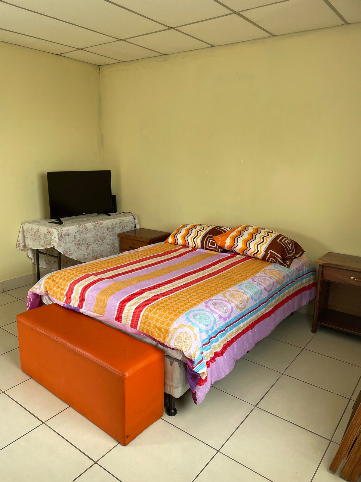 Cómoda habitación privada con baño y parqueo Disfruta de una acogedora habitación para dos personas con cama matrimonial, baño privado y todas las comodidades para tu estancia. Cuenta con microondas, cafetera, refrigeradora, escritorio de trabajo y clóset. Dispondrás de shampoo, jabón y gel de baño, además de café, té, azúcar y sal. También tienes acceso a parqueo gratuito y dos sillas afuera del alojamiento para relajarte. ¡Te esperamos!