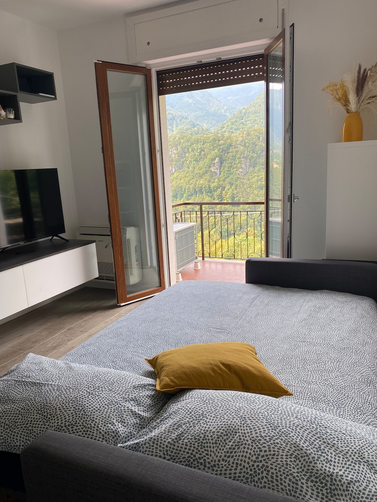 Căn hộ 1 phòng ngủ đầy nắng bao gồm phòng khách +nhà bếp, phòng ngủ, phòng tắm, lối vào và 2 ban công. Được tân trang hoàn toàn vào năm 2016, căn hộ này có tầm nhìn tuyệt đẹp ra sông Brembo và núi Val Brembana. Yên tĩnh và rất thoải mái cho một cặp vợ chồng, nó có thể đón tiếp tối đa 4 người. Vị trí rất trung tâm: cách lối vào spa QC Terme 100m, cách Casino 200m và ở đầu Promenade của thị trấn, nơi bạn có thể tìm thấy một loạt các nhà hàng và quán cà phê.