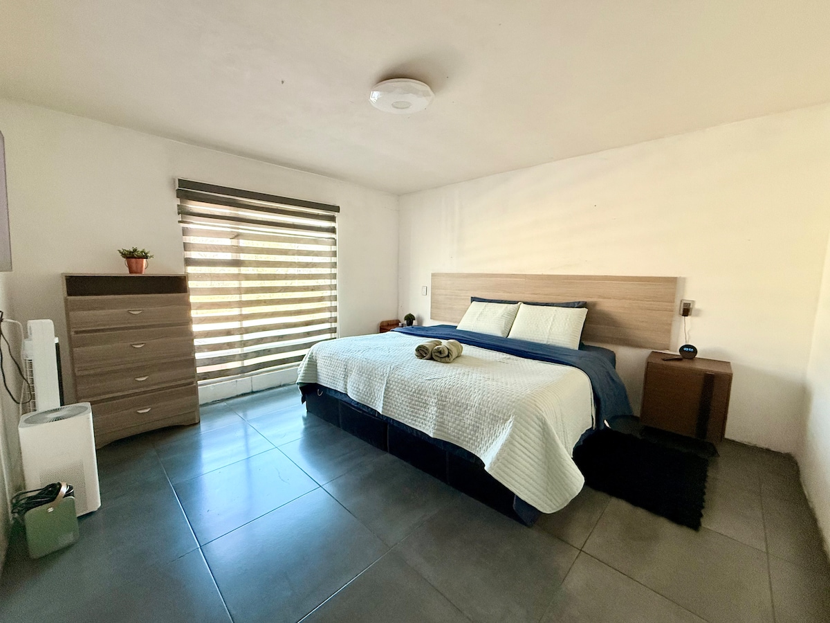 The house is equipped with fiber optic internet of 40 Mbps, desks and chairs that allow you to have comfortable workplaces for home office, lots of lighting and a beautiful contemporary Mexican decor that will captivate you. It has an automatic garage gate and it is in a safe place. Excellent for home office, to rent as an office or to rest and enjoy the weather. Also, we GUARANTEE that sheets, blankets and comforters are washed upon departure of each guest.