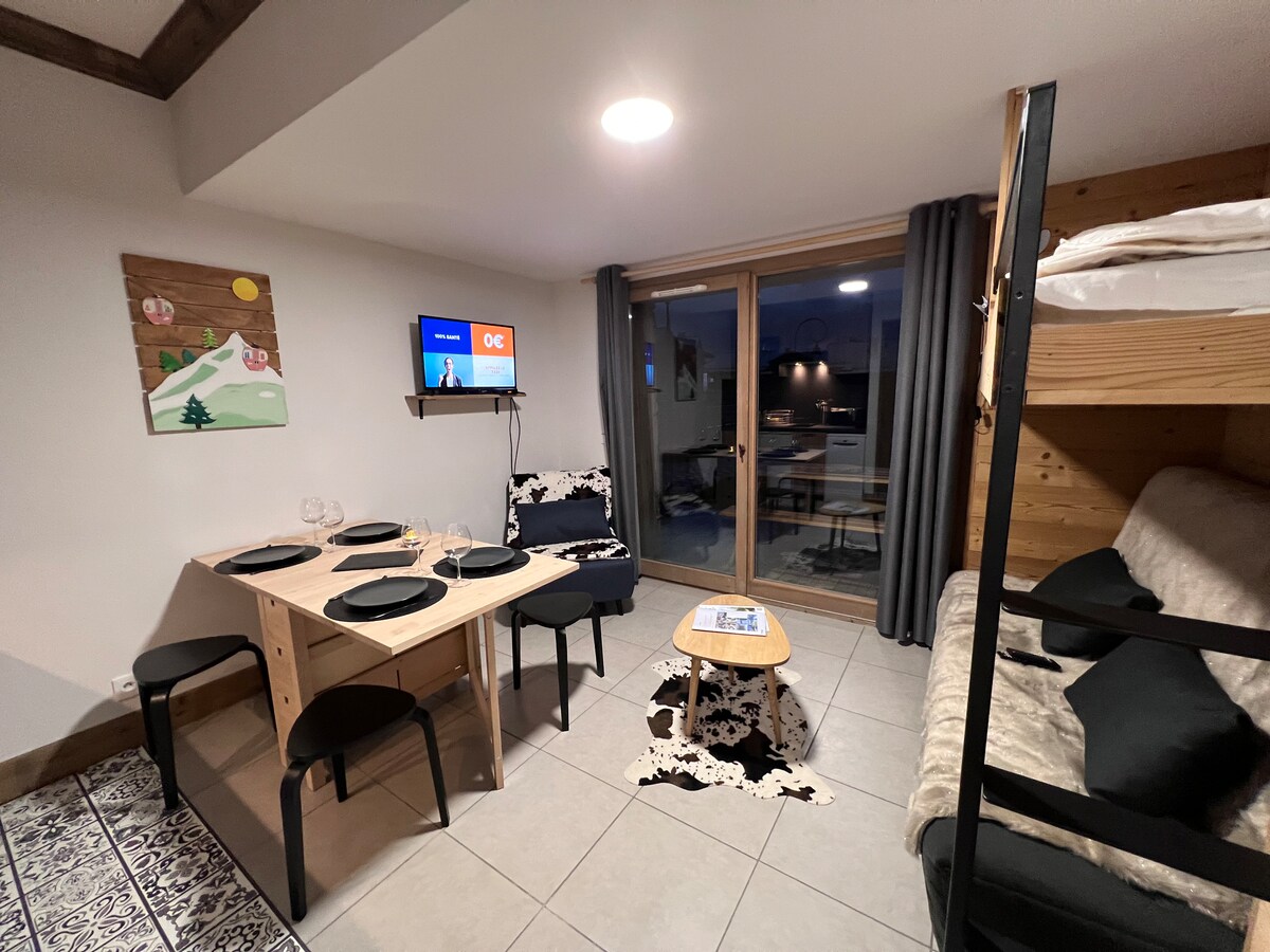 Studio trên núi ấm cúng ngay trung tâm Domaine des 7 Laux - Đầy đủ tiện nghi - 4/5 giường: 1 giường sofa 190x140, 2 giường tầng 190x90, 1 giường gấp 190x90 - Một trong những nơi duy nhất có lối đi thẳng ra các dốc trượt tuyết trong/ngoài trượt tuyết với 120 km dốc - Công viên nước mùa hè, leo cây, đạp xe leo núi, tennis, sân vận động thành phố, golf mini - Tiếp cận trực tiếp các cửa hàng và nhà hàng - Khu nghỉ dưỡng mùa đông và mùa hè hấp dẫn - Nhiều điểm khởi hành đi bộ đường dài, hồ... Tuyệt vời cho thời gian lưu trú với gia đình, cặp đôi hoặc bạn bè!