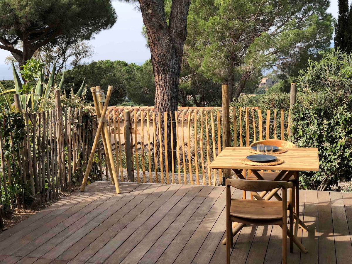 Toàn bộ nhà: căn hộ tầng trệt với sân thượng bằng gỗ nhìn ra biển và ô cây thông và chỗ đỗ xe ở trung tâm Gigaro trong một nơi cư trú an toàn. Tiếp xúc với Tây Nam sẽ cho phép bạn tận hưởng ánh nắng mặt trời cả ngày và hoàng hôn. Lối ra bãi biển cách đó 7 phút đi bộ. Căn hộ có giường và giường sofa, nhà bếp, phòng tắm