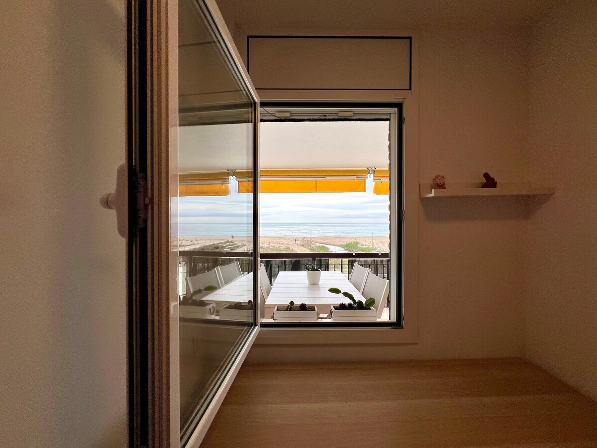 Disfruta de una estancia única en este espectacular apartamento situado en primera línea de playa, con unas vistas impresionantes al mar. Espacio para hasta 3 personas, con dos habitaciones y una tercera habilitada como despacho. Terraza espectacular, perfecta para relajarte mientras disfrutas de las vistas al mar. Está equipada con mesa y sillas para comer al aire libre, así como sofás exteriores. Piscina comunitaria. Plaza de parking privada. Cocina totalmente equipada, con todo lo necesario