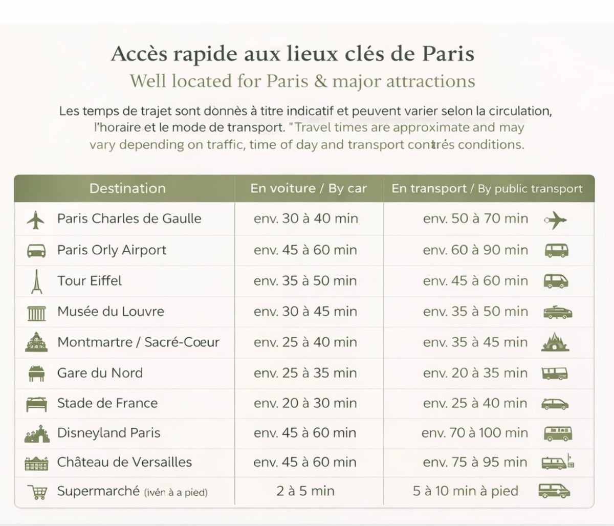 Tiện nghi phổ biến cho chỗ ở cho thuê phù hợp với người tập luyện tại Les Lilas