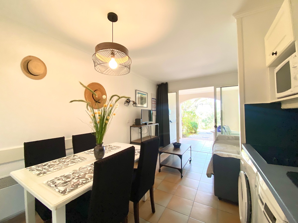Mon appartement a été entièrement rénové début 2023! Je vous propose de séjourner dans un studio refait avec goût pour vos prochaines vacances dans le sud, à Port Grimaud. Avec vue vue imprenable sur les canaux , vous profitez du soleil dès le matin sur la terrasse puis aurez la possibilité d'aller vous promener et d'accéder à la plage qui est à moins de 10mins (800 mètres) à pied seulement de l'appartement. Une place de parking privative vous permettra d'être garé en face du studio.