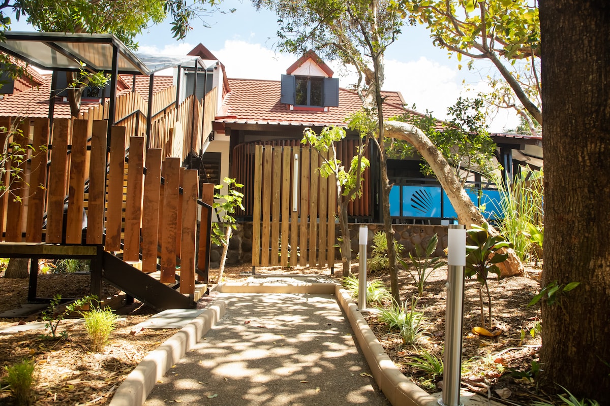 Tận hưởng thời gian lưu trú tại bungalow có điều hòa nhiệt độ rộng 27 m² của chúng tôi với phòng tắm riêng, sân thượng và bể sục riêng. Bungalow này liền kề ngôi nhà gỗ của chúng tôi nằm trong một khu vườn xanh mát với hồ bơi chung, chỉ cách bãi biển 10 phút lái xe. Hoàn hảo cho một kỳ ở cho hai người, hoàn toàn tự chủ và yên tĩnh.