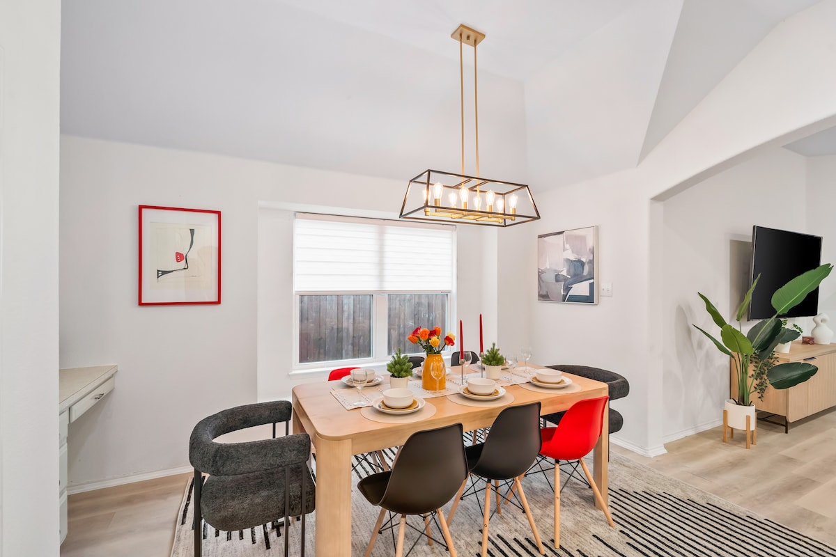 Thoải mái và phong cách! Chỗ ở của chúng tôi lý tưởng cho bất kỳ ai đi du lịch cùng gia đình, đi công tác hoặc chỉ là một kỳ nghỉ thư giãn! Đi bộ đến Hồ Lewisville! Các thiết bị mới hơn, ánh sáng và sáng sủa, bố cục mở cách Bãi biển Little Elm, ra mắt thuyền & địa điểm tổ chức đám cưới Knotting Hill Place. Phòng chính riêng cung cấp bàn làm việc cho nhu cầu kinh doanh của bạn. Wifi, TV thông minh, máy giặt, sân hiên có mái che, hố lửa và ghế Adirondack. Mọi thứ bạn cần tại chỗ! Khăn tắm, nhà bếp đầy đủ tiện nghi, máy pha cà phê Keurig và nhiều thứ khác nữa!