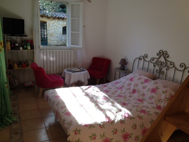 Phòng ngủ/phòng tắm, Wifi. Lối vào riêng. Phòng độc đáo: khu vực bàn/ghế bành có thể được thay thế bằng bàn làm việc theo yêu cầu, TV, ấm đun nước, máy pha cà phê Nespresso, tủ lạnh trên cùng, viên nang nespresso, trà, giường 140x200 cho 1 hoặc 2 người lớn. Tầng lửng với nệm xốp 130 cho 1 hoặc 2 trẻ em đến 12 tuổi giới hạn tối đa (chiều cao trần 1,50m). Có khăn trải giường và bồn tắm (miễn phí). Phòng tắm riêng (bồn rửa,vòi sen, bồn cầu). Giờ làm việc: 19:00/12:00. Không đặt phòng nếu Espace Sentein.
