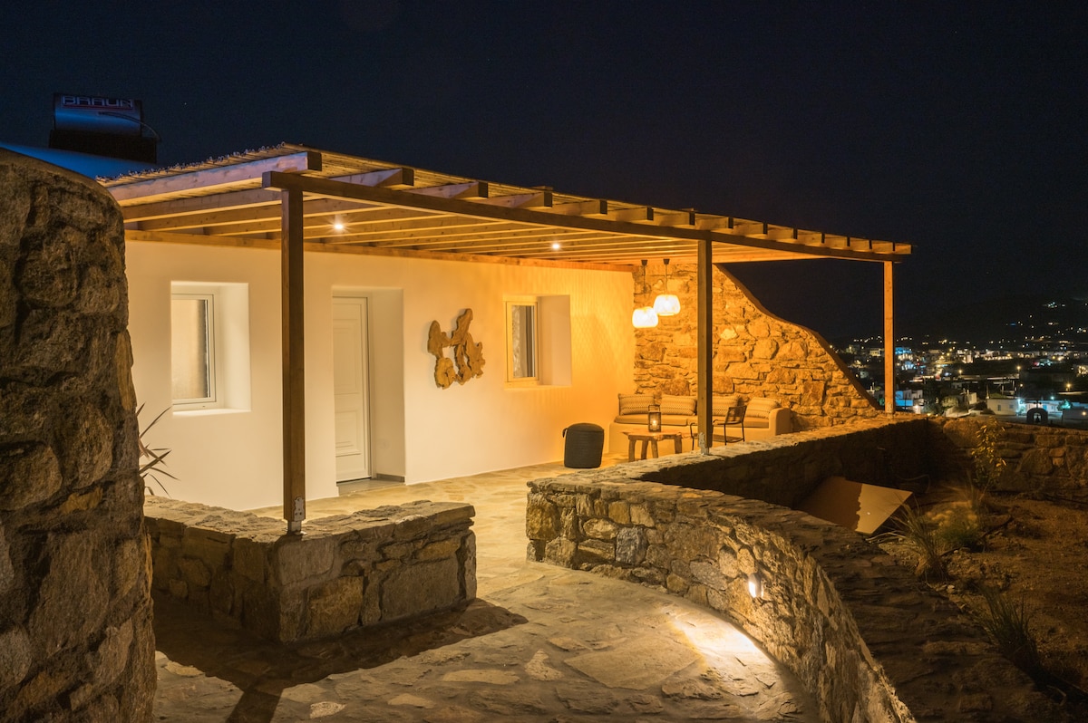 Biệt thự riêng có hồ bơi nước nóng và góc jacuzzi hai chỗ ngồi, kết hợp sự thoải mái hiện đại với kiến trúc Cyclade cổ điển, tọa lạc tại Kalo Livadi, chỉ cách bãi biển 2 phút lái xe, được xây dựng trên hai tầng với các lối vào riêng biệt để đảm bảo sự riêng tư cho khách.