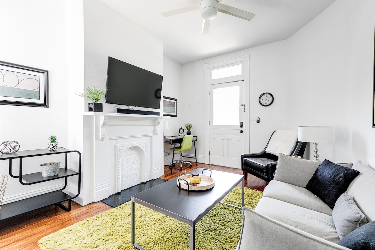 Nằm đối diện Công viên Chimborazo xinh đẹp, ngôi nhà đá vôi lịch sử này có từ năm 1902. Toàn bộ mặt trời tràn ngập tầng trên cùng có hai phòng ngủ, đồ ăn trong bếp và phòng tắm đầy đủ. Căn hộ cũng bao gồm TV thông minh 56"và hai khu vực bàn làm việc nếu cần. Bạn cần giặt quần áo? Không vấn đề gì, có một lỗ thông hơi tất cả trong một máy giặt/máy sấy. Hiên trước chung với rocker và tầm nhìn ra công viên, và một sân sau chung cung cấp các cách thân thiện với khoảng cách xã hội bổ sung để đi chơi.