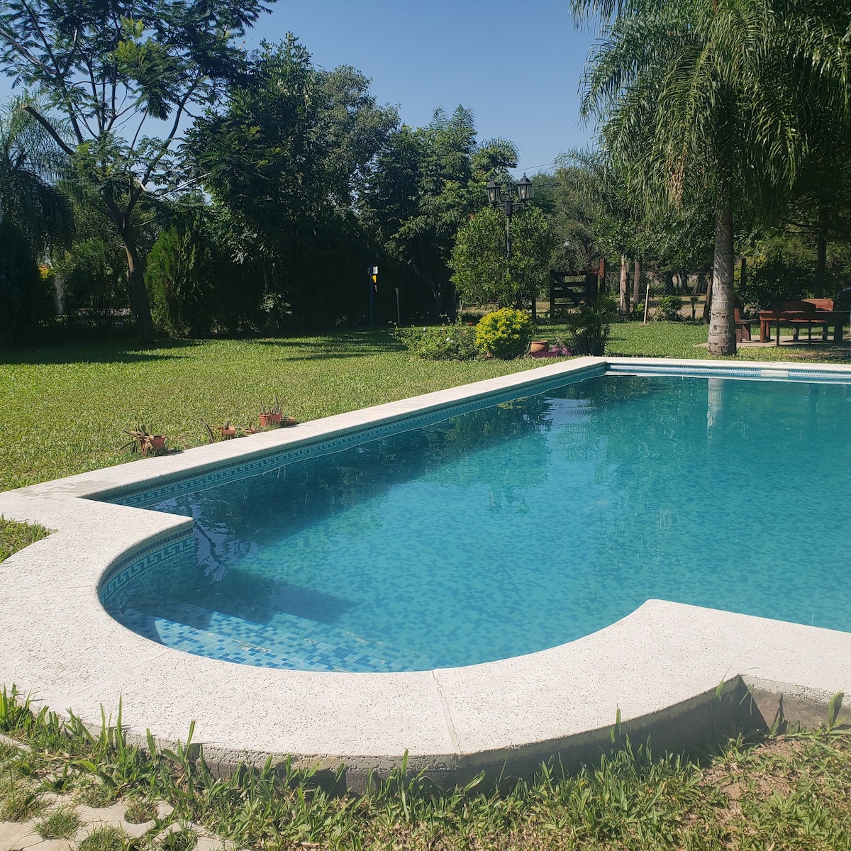 Bienvenidos, este lugar es único! Equipada con TV HD, wifi, aire acond. este espacio es ideal para relajarte y disfrutar. Nuestra parrilla interior es perfecta para asados increibles, piscina de 8x4m y galería exterior, ideal para disfrutar del atardecer. Nuestro parque te permite disfrutar de la naturaleza y poder realizar actividades al aire libre... fútbol, cama elástica, metegol, etc. *NO SE PERMITEN VISITAS *Si se permiten mascotas pequeñas Te esperamos!