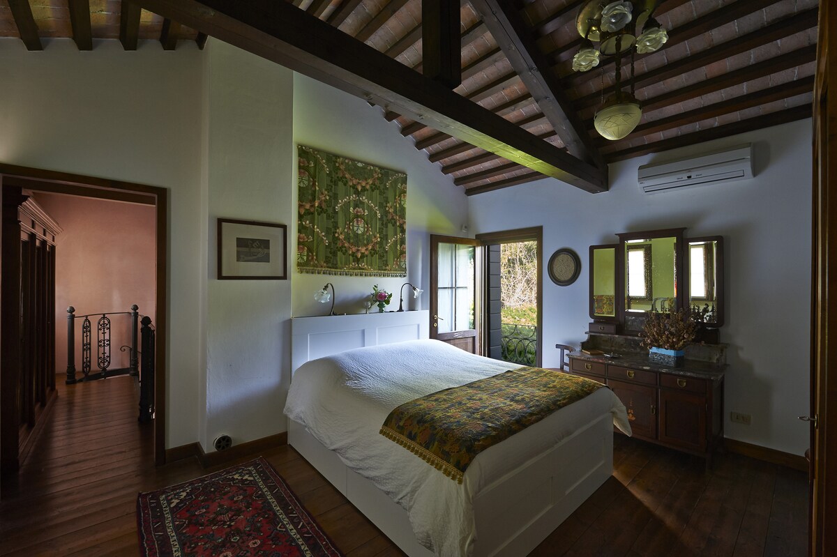 Phòng, ở tầng hai, rất rộng: bao gồm một giường chính (160 x 6 cm) và một phòng tắm riêng với bồn tắm Jacuzzi (và vòi sen) tuyệt đẹp.