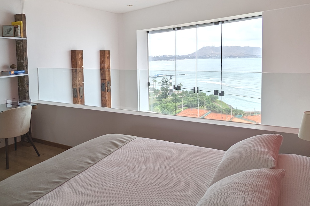Tận hưởng Lima từ một căn hộ hai tầng độc đáo với 2 phòng ngủ, cả hai đều được trang bị giường cỡ queen, mỗi phòng đều có phòng tắm, được bao quanh bởi tầm nhìn tuyệt vời ra lối đi bộ lát ván, hải đăng và Vịnh Lima. Nó sẽ làm cho thời gian ở của bạn trở thành một chuyến đi hoàn hảo. Dùng bữa tại các nhà hàng tốt nhất ở Peru, uống cà phê với tầm nhìn ngoạn mục hoặc đi bộ xung quanh ăn kem trong khu vực an toàn. Một trải nghiệm mà bạn sẽ yêu thích.