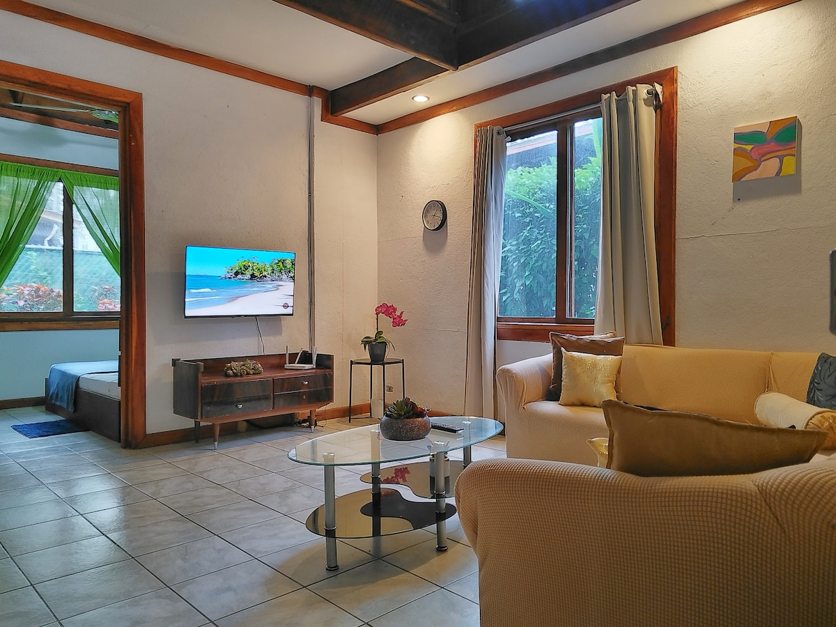 Nằm trong rừng nhiệt đới. Chưa đầy 10 phút lái xe đến bãi biển, cửa hàng tạp hóa và ăn uống gần nhất. Đã bao gồm 2 xe đạp trong hợp đồng thuê. Căn hộ được che chắn. Nhưng, bạn có thể mở màn hình nếu muốn. Bao gồm ga trải giường, khăn tắm, giấy vệ sinh, xà phòng. Nước nóng trong bếp và vòi sen. Lắng nghe tiếng khỉ tru. Ngắm chim, con lười, thằn lằn và tất cả các cảnh tượng và âm thanh của rừng nhiệt đới. Không thích hợp cho trẻ em dưới 12 tuổi. Không chấp nhận thú cưng Chúc bạn có một chuyến đi vui vẻ!! :-D