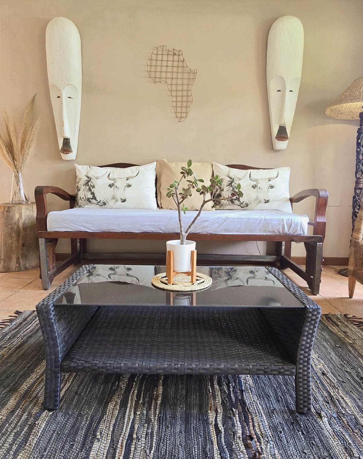 Set on the banks of Da Gama Lake, between White River and Hazyview, this rustic two-bedroom home offers breathtaking, uninterrupted views of the water. A winding path leads down to a private sundowner spot right on the lake’s edge, the perfect place to relax and take in the scenery. From here, you also have access to peaceful walking trails that meander through the area. For the more adventurous, the dam provides an invigorating and refreshing swim in its clear waters.